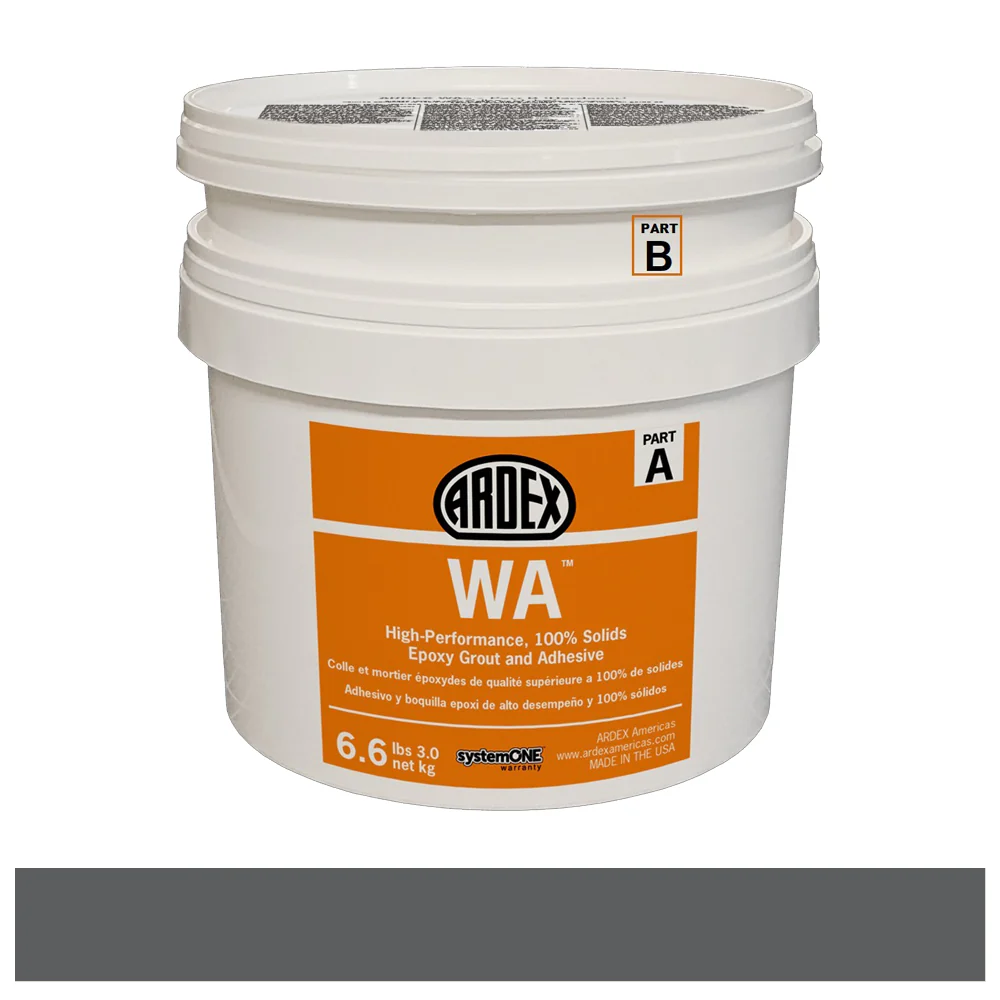 ARDEX WA™ High-performance, 100% Solids Epoxy Grout and Adhesive is a solvent-free, two-component epoxy grout and adhesive. ARDEX WA is suited particularly for tile installations in wet areas and any installation requiring high standards of hygiene and chemical resistance. Tile installed with ARDEX WA can be grouted in 12 hours.